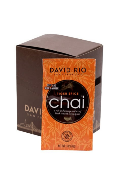 El te chai Tiger Spice, es el sabor original del chai David Rio con una rica combinación de té negro y especies exóticas que incluyen, canela, cardamomo y clavo.